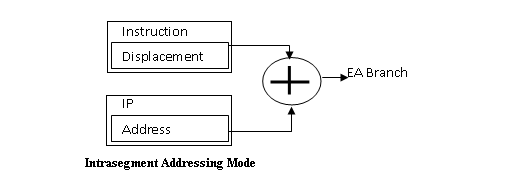 8086 Addressing Modes 8086 Microprocessor by Ravinder Nath Rajotiya - September 30, 20200 Share on Facebook Share Send email Mail Print Print Table of Contents Toggle Addressing Modes of 8086Data related addressing modes1. Immediate Addressing Mode: In this mode the 8 or 16 bit data is part of the instruction. The assembler at assembly time inserts this value directly into the machine instruction. An immediate data can be a constant such as a number, character or an arithmetic expression.2. Direct Memory Addressing Mode: In this mode the 16 bit effective address of the data is part of the instruction. The direct operand refers to the content of memory at address implied by the name of the variable. Assuming if count is declared as a variable in data segment.3. Register Addressing Mode: This mode is used for register to register transfer. Both the source and destination registers should be of the same size i.e. AX, BX, CX, DX,SI,DI or SP or BP for 16-bit and AH, AL, BH, BL, CH, CL, DH, DL for 8-bit data.4. Register Indirect: In this addressing mode the register contains the effective address (EA) where the operand will be found. The EA is in the base (BX) or index registers (SI, DI) i.e. EA= [BX] or [SI] or [DI].5. Register Relative Addressing Mode: In this addressing mode the effective address of the data is calculated by adding content of the base or index register with 8 bit sign extended or 16 bit displacement as shown in figure.6. Based Indexed Addressing Mode: The effective address is obtained by adding the contents of the base registers and the index register, both of which are given in the instruction. EA= {[BX] or [BP]} + {[SI] or [DI]}7. Relative Based Indexed Addressing Mode: In relative based indexed addressing mode the effective address is obtained by adding the contents of the base Register, Index Register and 8/16 bit displacement. EA = {[BX] or [BP] } +{[SI] or [DI]} + { 8 bit sign extended or 16 bit displacement}.Branch Related Addressing Modes:Intrasegment Direct Addressing Mode:2. Intrasegment Indirect Addressing:3. Intersegment direct Addressing Mode: 4. Intersegment Indirect Addressing Mode: Addressing Modes of 8086 As we are aware that the 8086 operates on the operands that is to be fetched from memory, i/o, registers or by some other means such as an immediate number etc. The way or the technique in which the operand is specified is called an addressing mode. The addressing mode help us in identifying the source of the operand or calculate the offset of the operands if it is in memory. The addressing mode of 8086 is divided in two categories: Data related addressing modes : It is used for data access from /to different source and destinations. Branch related addressing modes: It is used to branch to different location within same or different segment. Data related addressing modes 1. Immediate Addressing Mode: In this mode the 8 or 16 bit data is part of the instruction. The assembler at assembly time inserts this value directly into the machine instruction. An immediate data can be a constant such as a number, character or an arithmetic expression. Examples: MOV AL, 09h ; immediate 8-bit hex number MOV AH, 12 ; immediate decimal number MOV AL, ‘R’ ; immediate character value MOV AL, (5+2)*3 ; immediate value of an expression MOV CX, 2345h ; immediate 16-bit hex number 2. Direct Memory Addressing Mode: In this mode the 16 bit effective address of the data is part of the instruction. The direct operand refers to the content of memory at address implied by the name of the variable. Assuming if count is declared as a variable in data segment. Example: MOV AL, count ; count is a variable in data segment (count is relocatable variable) JMP NEXT ; NEXT is a label in the code segment (NEXT is relocatable variable) MOV AL, DS:5 ; Fixed or Non-Relocatable address (segment : offset Example of non-relocatable operands) MOV AX, ES: count ; Extra Segment and variable in ES and is relocatable variable 3. Register Addressing Mode: This mode is used for register to register transfer. Both the source and destination registers should be of the same size i.e. AX, BX, CX, DX,SI,DI or SP or BP for 16-bit and AH, AL, BH, BL, CH, CL, DH, DL for 8-bit data. Examples: MOV AL, BL MOV BX, DX MOV AL, BH MOV AL, BX ; Wrong because the two registers are of different size 4. Register Indirect: In this addressing mode the register contains the effective address (EA) where the operand will be found. The EA is in the base (BX) or index registers (SI, DI) i.e. EA= [BX] or [SI] or [DI]. Example: There are four forms of this addressing mode on the 8086, best demonstrated by the following instructions: MOV al, [bx] MOV al, [bp] MOV al, [si] MOV al, [di] When a variable like ARRAY is declared in data segment, then the statement like: MOV BX, offset ARRAY; A program to move certain bytes of data from source to destination variable MOV SI, offset X MOV DI, offset Y MOV AL, [SI] MOV [DI], AL 5. Register Relative Addressing Mode: In this addressing mode the effective address of the data is calculated by adding content of the base or index register with 8 bit sign extended or 16 bit displacement as shown in figure. EA = Content of [ (BX) or (BP), or (SI), or (DI)] + 8 bit sign extended / 16 bit displacement The indexed addressing modes use the following syntax: MOV AL, disp[BX] MOV AL, disp[BP] MOV AL, disp[SI] MOV AL, disp[DI] EXAMPLES : MOV AL, 2[BX] or MOV AL, [BX + 2] MOV AL, num1[BX] or MOV AL, [BX + num1] In figure we can also use register BP and the instruction MOV AL,[BP+disp] 6. Based Indexed Addressing Mode: The effective address is obtained by adding the contents of the base registers and the index register, both of which are given in the instruction. EA= {[BX] or [BP]} + {[SI] or [DI]} Example: MOV AL, [BX][SI] MOV AL, [BX][DI] MOV AL, [BP][SI] MOV AL, [BP][DI] MOV AX, [SI+DI] Suppose that BX contains 1020h and SI contains 229h. Then the instruction MOV AL, [BX][SI] would load al from location